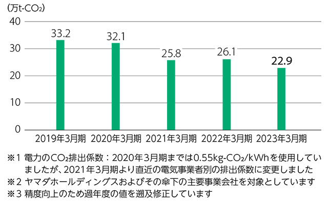 ヤマダホールディングスグループは、持続可能な社会の実現において、気候変動への対応を重要な課題のひとつと認識しています。事業活動全体に関わるCO2排出量の削減を進めるべく、TCFD提言に沿った気候変動関連の情報開示の充実を図るとともに、事業活動を通じた対策を進めています。