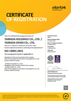 ヤマダホールディングスは、本社機能を対象として、ISO14001認証を2011年1月に取得しました。