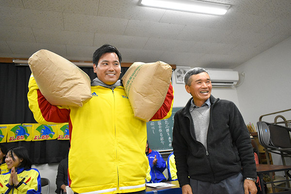 収穫祭では、後援会の皆様と一緒に餅つきを行い親睦を深めるとともに、日頃の応援への感謝を伝えました。